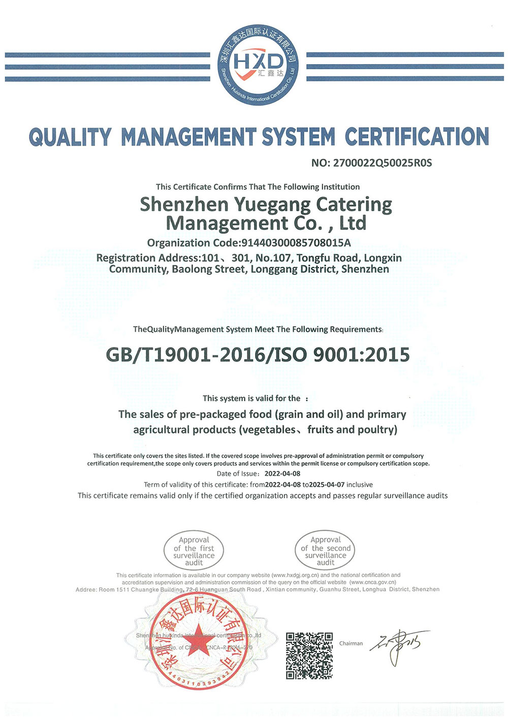深圳市粵崗餐飲管理有限公司,是一家集蔬菜種植和農副產(chǎn)品配送為一體的專業(yè)型餐飲公司,主要為學校、工廠企事業(yè)機關單位提供蔬菜和農副產(chǎn)品配送服務。公司自成立以來始終以質優(yōu)價廉、服務至上為原則,嚴格按照ISO:9001國際標準體系進行管理。同時建立了行業(yè)領先的配送中心、大型冷庫和保鮮庫、檢測中心以及專業(yè)化的配送團隊,能長期安全、穩(wěn)定、準時的配送貨物。我們所有蔬菜均經(jīng)過初步加工、無黃葉,無泥沙等雜質,利用率達97%以上...保障向用戶提供的各類食材的衛(wèi)生和質量。公司為了適應不同客戶的需求,配有專業(yè)人員和配送車輛,實行“一對一”的服務體制,一心一意的為客戶服務,秉承粵崗誠實守信、服務第一、客戶至上的服務標準,真正讓客戶花最少的錢吃最好的菜。粵崗多年來何以欣欣向榮,因為我們知道只有勇于擔當責任,才能承擔更大的責任,就是因為 粵崗員工貫徹公司態(tài)度決定一切、細節(jié)決定成敗的真理,從質量抓起,從服務做起,才創(chuàng)造了如今的規(guī)模化供應、統(tǒng)一性配送、專業(yè)化服務的粵崗。